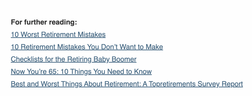 Comments? What are your biggest retirement mistakes. Please share them so others can be aware of the pitfalls.