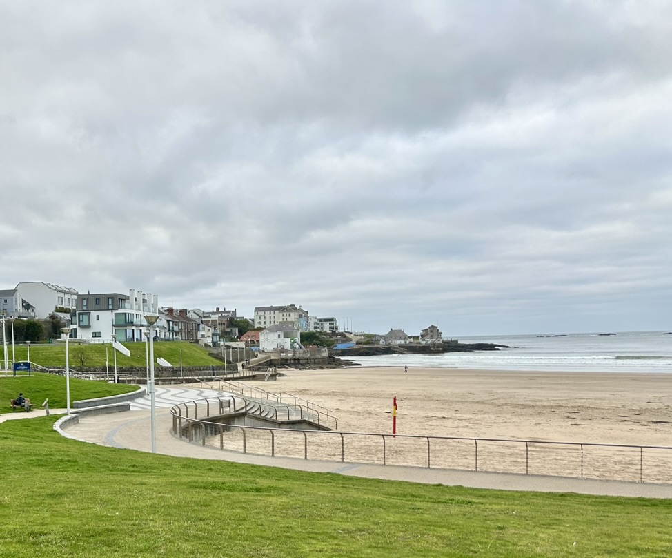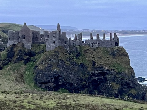 November 18, 2025 — Folks are sturdy here in beautiful Portrush, Northern Ireland. The temperature on the beach was 52 F. (12 C.), about the same as the outdoor temperature, cloudy with a fair breeze. Fifteen to twenty women in bathing suits were in the water up to their knees splashing in the cold and rolling surf. Occasionally one would plunge into the surf, laughing and shrieking, then make a few strokes before emerging. Asking a local about it, we found that the women were part of a club (and not the only one!) that takes this breathtaking dip every day of the year.