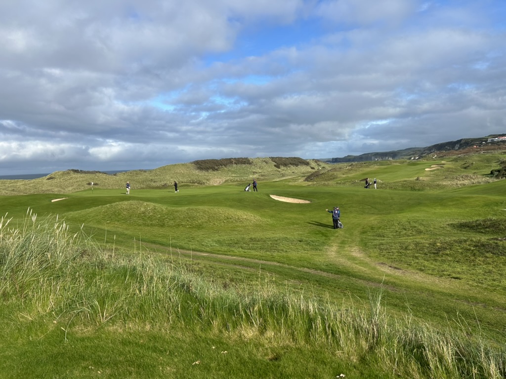 Although the big attractions are the wide, wide beaches and the pounding surf, golf is very big here too. (Royal Portrush was the site of the 2025 British Open won by Scottie Scheffler), Unlike in the U.S., golf courses are open to the public (by contrast, try to get a tee time at Augusta or Pine Valley if you are not a President or CEO!). Residents of these towns can join a fabulous golf club like Port Stewart and pay annual dues less than 1,000 pounds, subsidized by the high greens fees paid by golfers from around the world. These golfing tourists get to play some of the top courses in the world, thrilled by the undulating fairways, towering dunes, and sloping greens of the true links courses that abound on this peninsula.