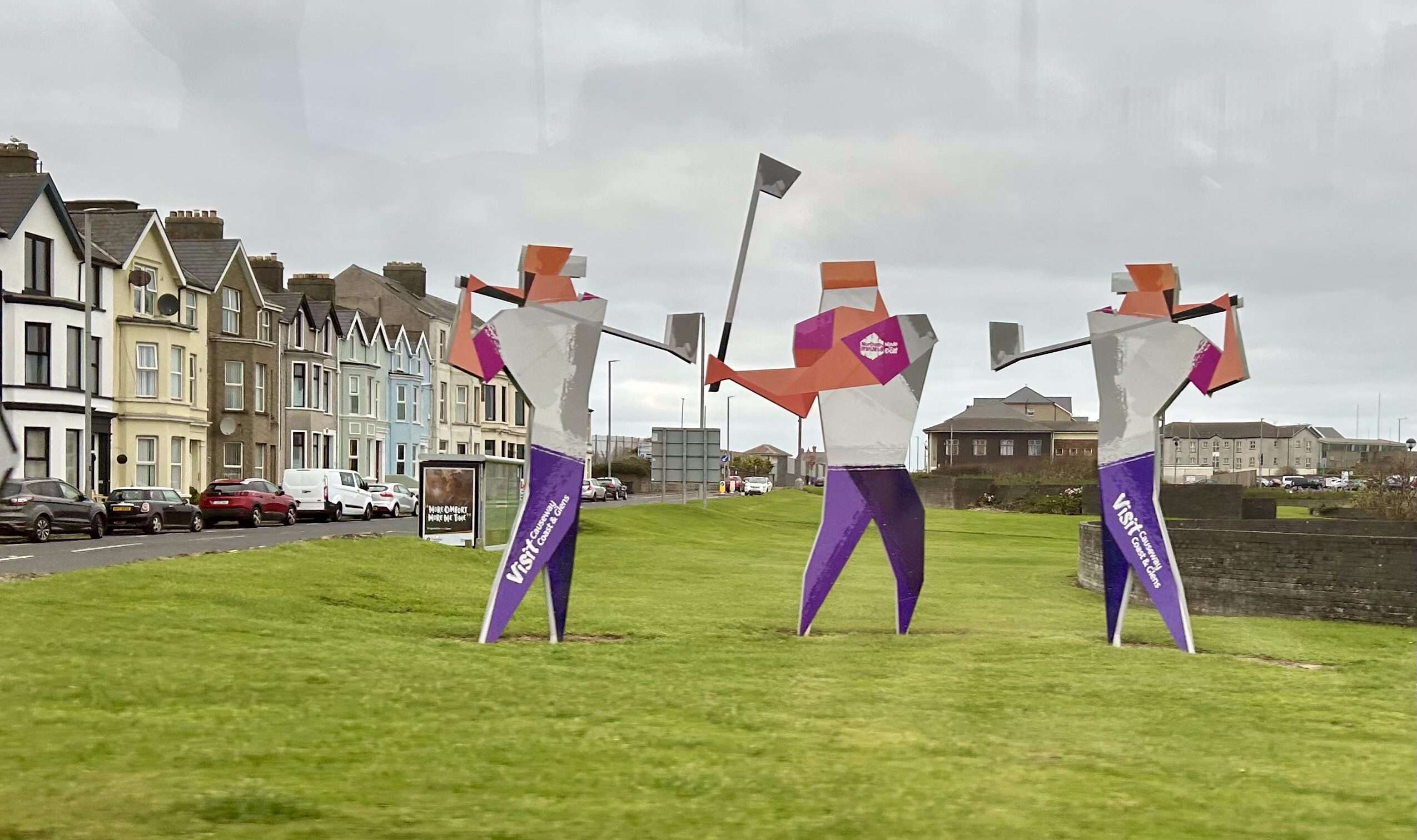 November 18, 2025 — Folks are sturdy here in beautiful Portrush, Northern Ireland. The temperature on the beach was 52 F. (12 C.), about the same as the outdoor temperature, cloudy with a fair breeze. Fifteen to twenty women in bathing suits were in the water up to their knees splashing in the cold and rolling surf. Occasionally one would plunge into the surf, laughing and shrieking, then make a few strokes before emerging. Asking a local about it, we found that the women were part of a club (and not the only one!) that takes this breathtaking dip every day of the year.